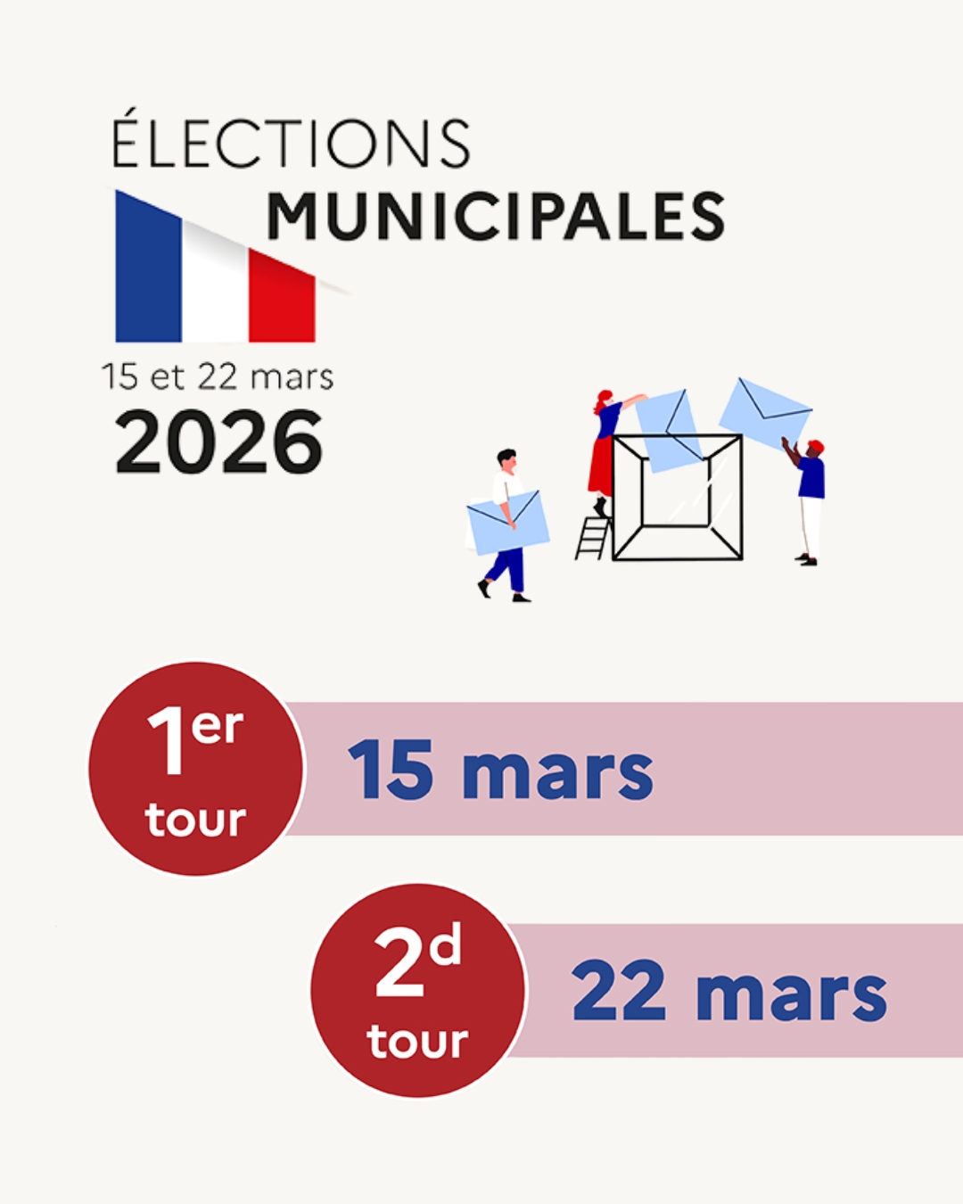 Les élections municipales et communautaires auront lieu les 15 et 22 mars 2026. Si ce n’est déjà fait, pensez à vous inscrire sur les listes électorales avant la date butoir.