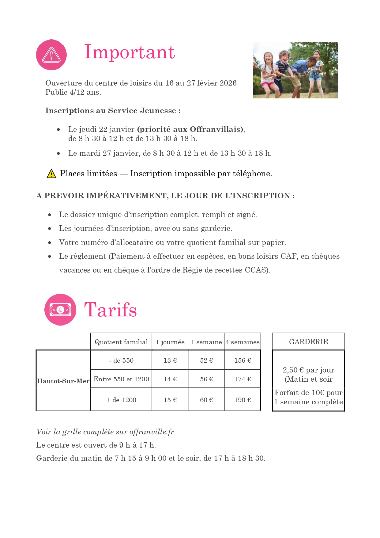 - jusqu’au vendredi 6 février 2026 inclus si vous vous inscrivez en mairie.