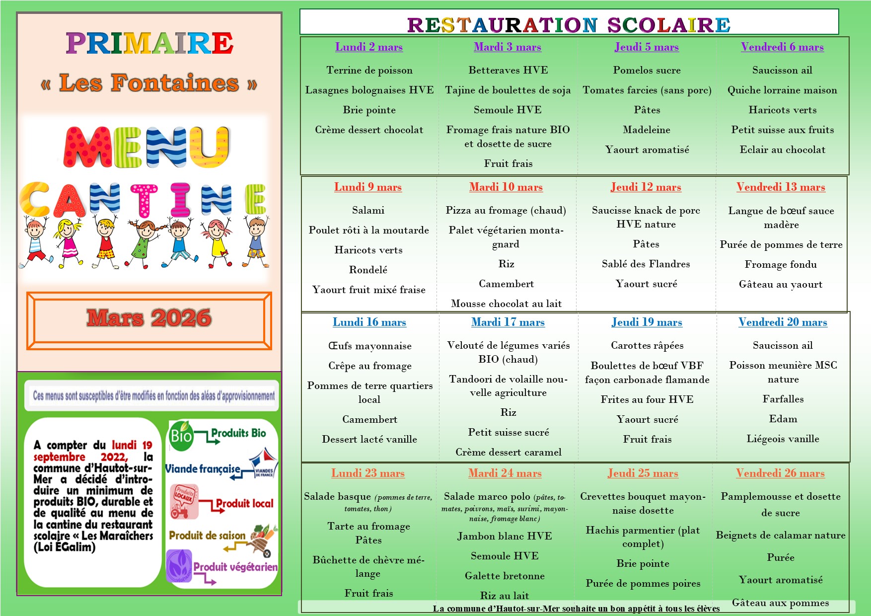 MENU DU MOIS